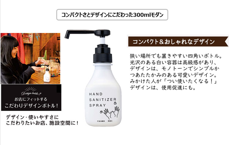 速乾性の液体タイプの手指消毒剤。保湿剤(グリセリン)配合。べたつかずさっぱりとした使用感。
